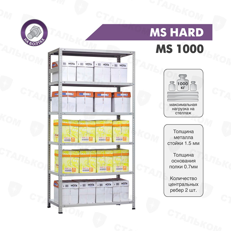 - Стеллаж MS Hard, 1000 кг на секцию